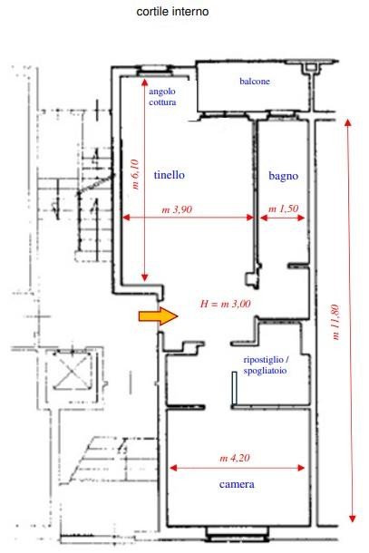 L'immobile è posto al piano rialzato (primo fuori terra). L'alloggio è composto da: disimpegno, tinello con angolo cottura, una camera, un bagno, un ripostiglio e balcone, oltre alla cantina al piano interrato.