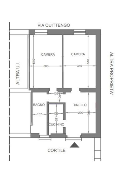 Immobile posto al piano terreno (primo fuori terra). L'alloggio è composto da: tinello con cucinino, due camere e bagno. Al piano interrato due cantine di pertinenza.