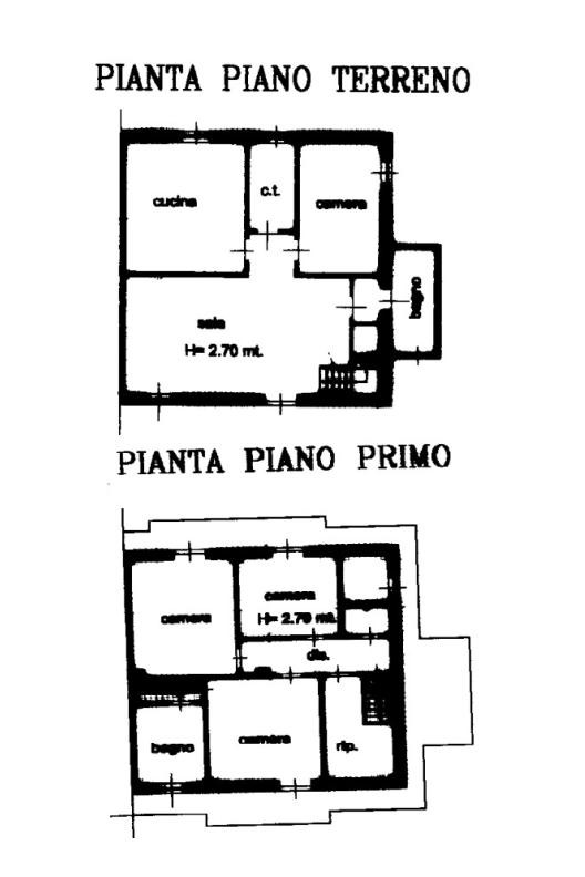 - al piano primo: tre camere da letto, due bagni, un ripostiglio, disimpegno e terrazzo.