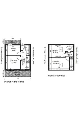 - piano primo: disimpegno, due camere da letto, bagno e due terrazzini;