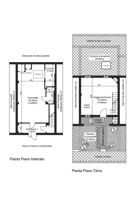 - piano interrato: tavernetta con cucinino, bagno e deposito;