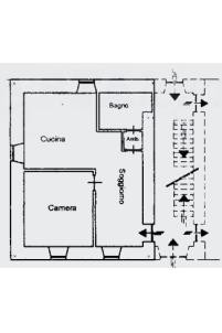L'immobile è posto al piano terra (primo fuori terra). L'alloggio o è composto da: cucina, soggiorno, camera e bagno