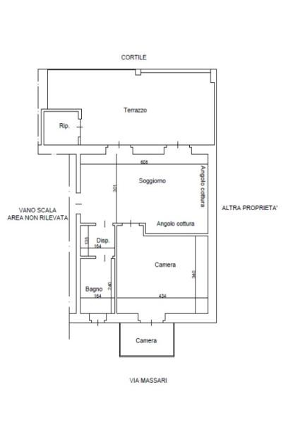 Immobile posto al piano terzo (quarto fuori terra). L'alloggio è composto da: ingresso su soggiorno con angolo cottura, camera, bagno, disimpegno, balcone e terrazza. Al piano interrato cantina di pertinenza.