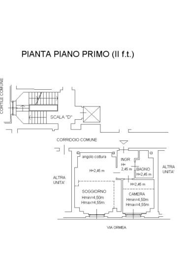 Immobile posto al piano primo (secondo fuori terra). L'alloggio, in fase di ristrutturazione, è composto da: ingresso, soggiorno con angolo cottura, una camera, bagno e soppalco. Al piano interrato cantina di pertinenza.