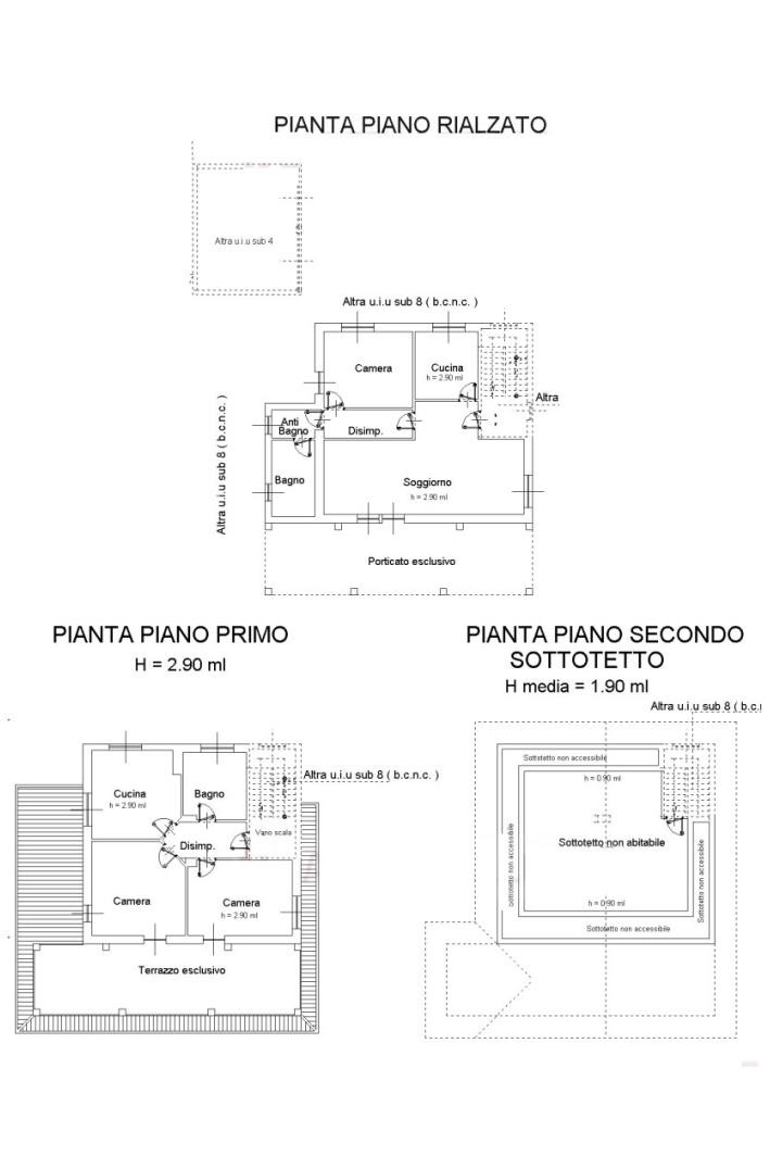 - al piano primo: ingresso su disimpegno, tre camere, bagno e terrazzo esclusivo;