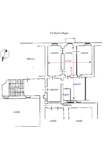 Immobile posto al piano secondo (terzo fuori terra). L'alloggio, da ristrutturare, è composto da: ingresso, cucina, tre camere, bagno e balcone. Al piano terreno cantina di pertinenza.