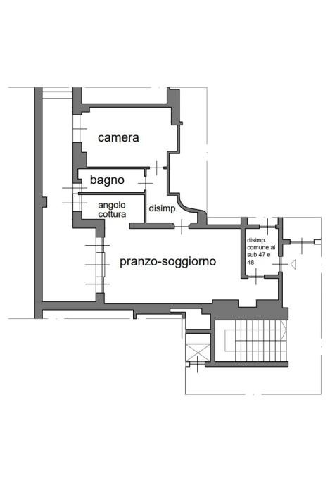 Immobile posto al piano secondo (terzo fuori terra). L'alloggio è composto da: soggiorno con angolo cottura, disimpegno, una camera, bagno e terrazzo.