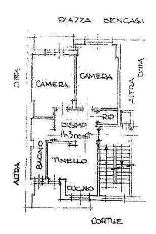 L'immobile è posto al piano secondo (terzo fuori terra). L'alloggio è composto da: ingresso/disimpegno, tinello con cucinino, due camere, ripostiglio e bagno. Cantina e soffitta di pertinenza.