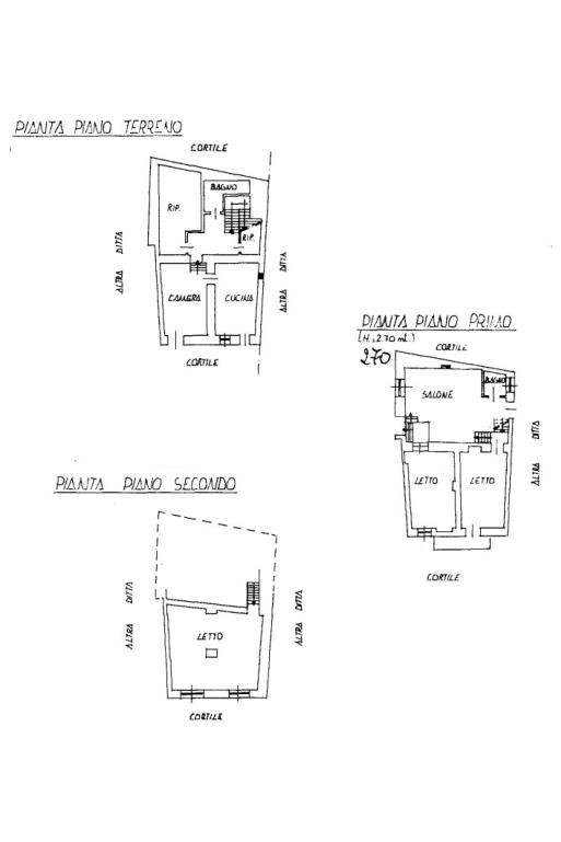 - al piano terreno: cucina, stanza, ripostiglio, bagno, deposito, cortile e giardino retrostante;