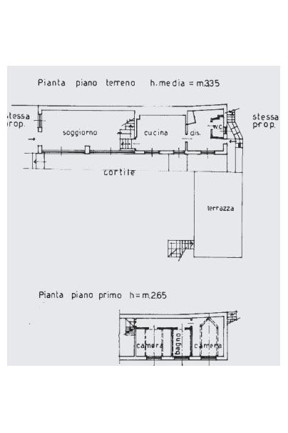 - al piano terra: soggiorno, cucina, disimpegno, bagno e terrazzo;