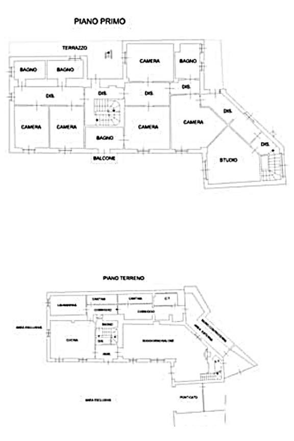 - al primo piano: sei disimpegni a formazione di un unico corridoio, cinque camere, studio, quattro bagni e terrazzo;
