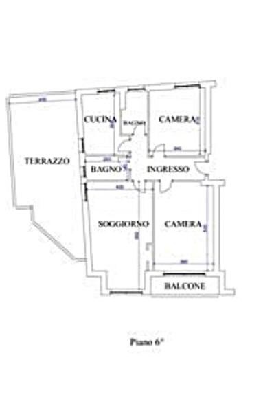 Immobile posto al piano sesto (settimo fuori terra). L'alloggio è composto da: ingresso, due camere da letto, soggiorno, cucina, due bagni, terrazzo e balcone.
