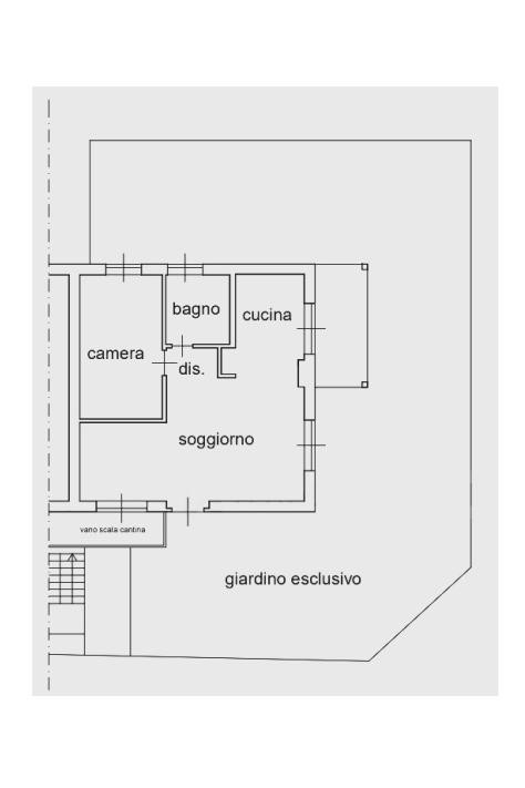 Immobile posto al piano rialzato (primo fuori terra). L'alloggio è composto da: ingresso, soggiorno, cucina a vista, camera, bagno, veranda e giardino esclusivo. Al piano interrato cantina e box auto di pertinenza.